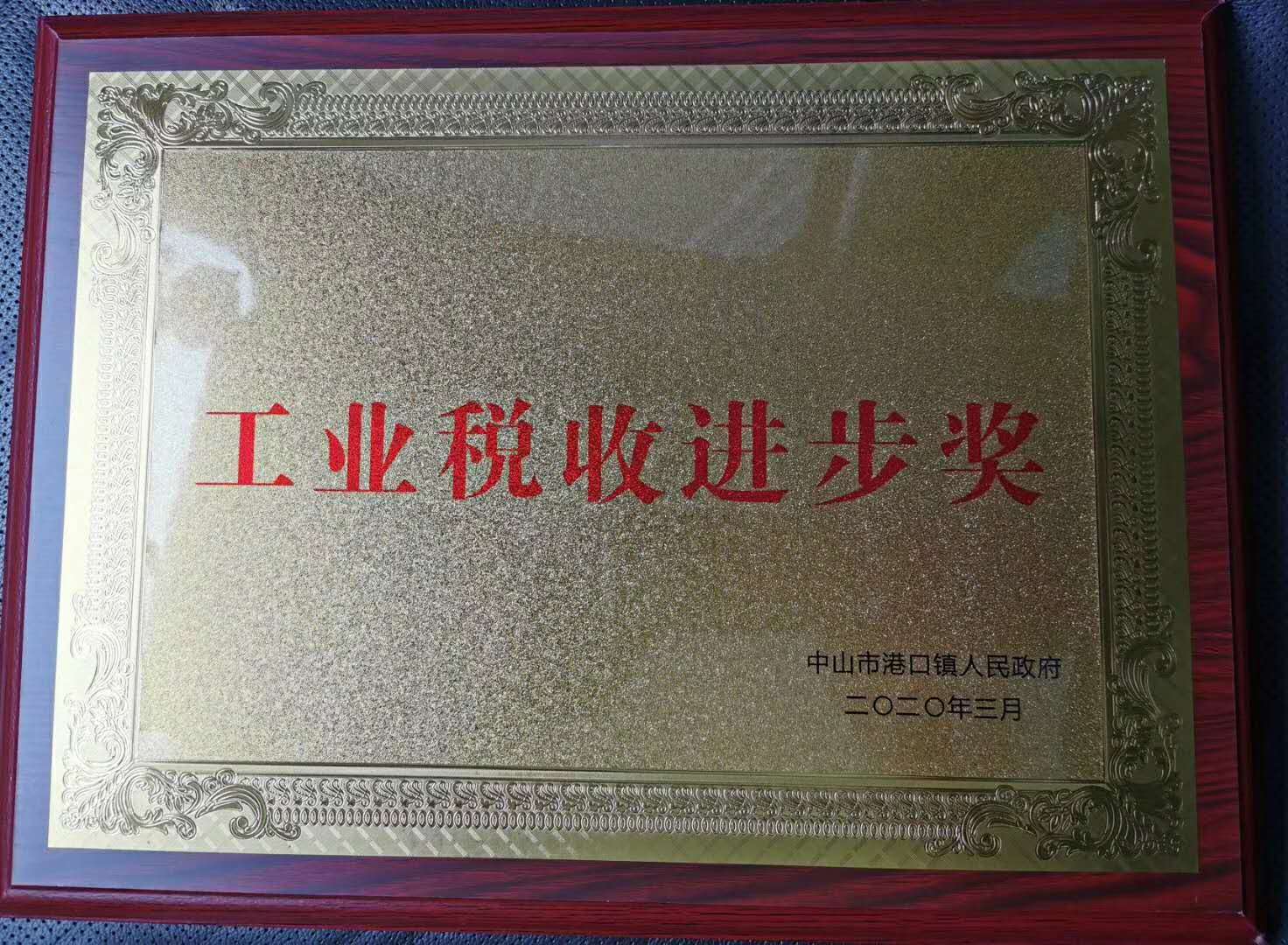 2020年3月26日上午我司应邀参加了2020年港口镇投资经贸交流会暨项目集体动工、投产(竣工)大会。本次大会主题为“抓抢‘双区’新机遇合作共赢促发展”。会议中指出港口镇2019年税收总额增长23.8%,工业投资增长149.7%,工业技术改造投资增长94.6%,取得可喜的成绩。我司在2019年度税收达到400多万,获得了由中山市港口镇人民政府颁发的“工业税收进步奖”的殊荣。