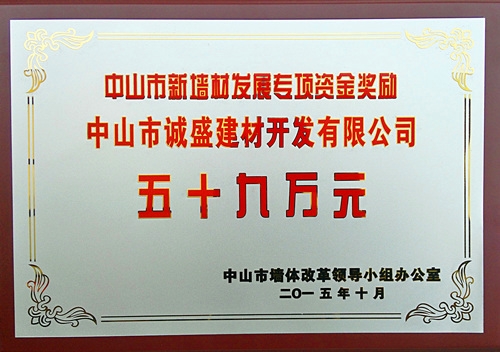 喜讯:亚星官方手机版公司荣获中山市新墙材发展专项资金奖励