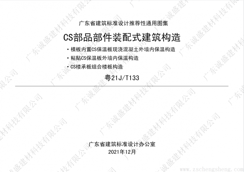 广东省建筑标准设计推荐性通用图集《CS部品部件装配式建筑构造》粤21J/T133于2022年3月1日正式施行