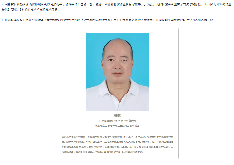 【百名专家团队】亚星官方手机版董事长 黄照明 聘为预拌砂浆分会百名专家团队高级专家